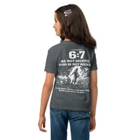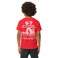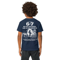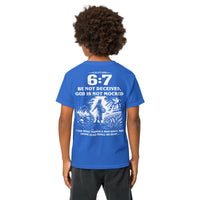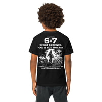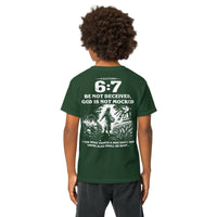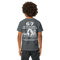 Galatians 6:7 Youth T-Shirt — A Meaningful Alternative to the “67” Trend (White Text and Graphic)